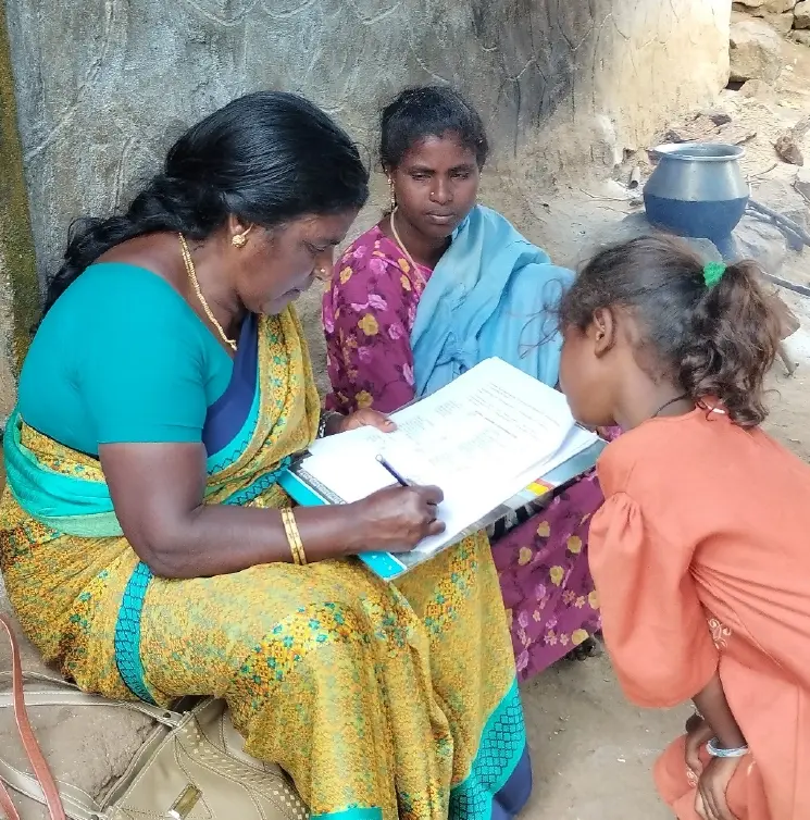 September 2022, Perungadu village, community survey, Dr. Sudipta, S/N Jayapratha, Social worker Monica.